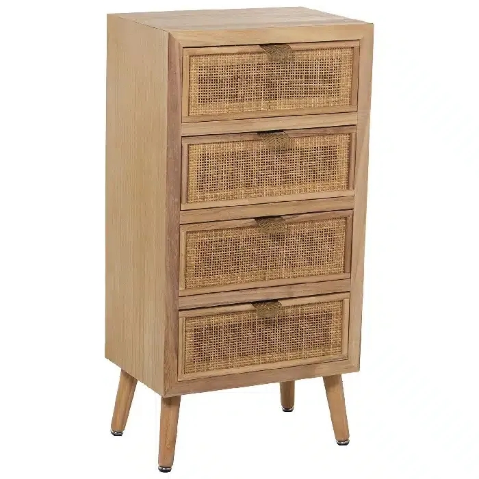 Sinfonier Madera Natural Ratán 4 Cajones, Chiara (45x30x89 cm)