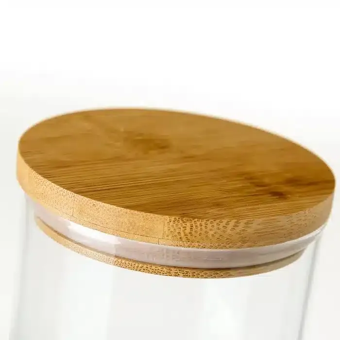 Bote en cristal transparente y tapa de bambú, ideal para mantener el orden en tu cocina sin renunciar al estilo.