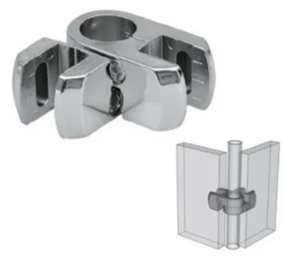 Union box angular 2 salidas tubo a madera/cristal – cromado