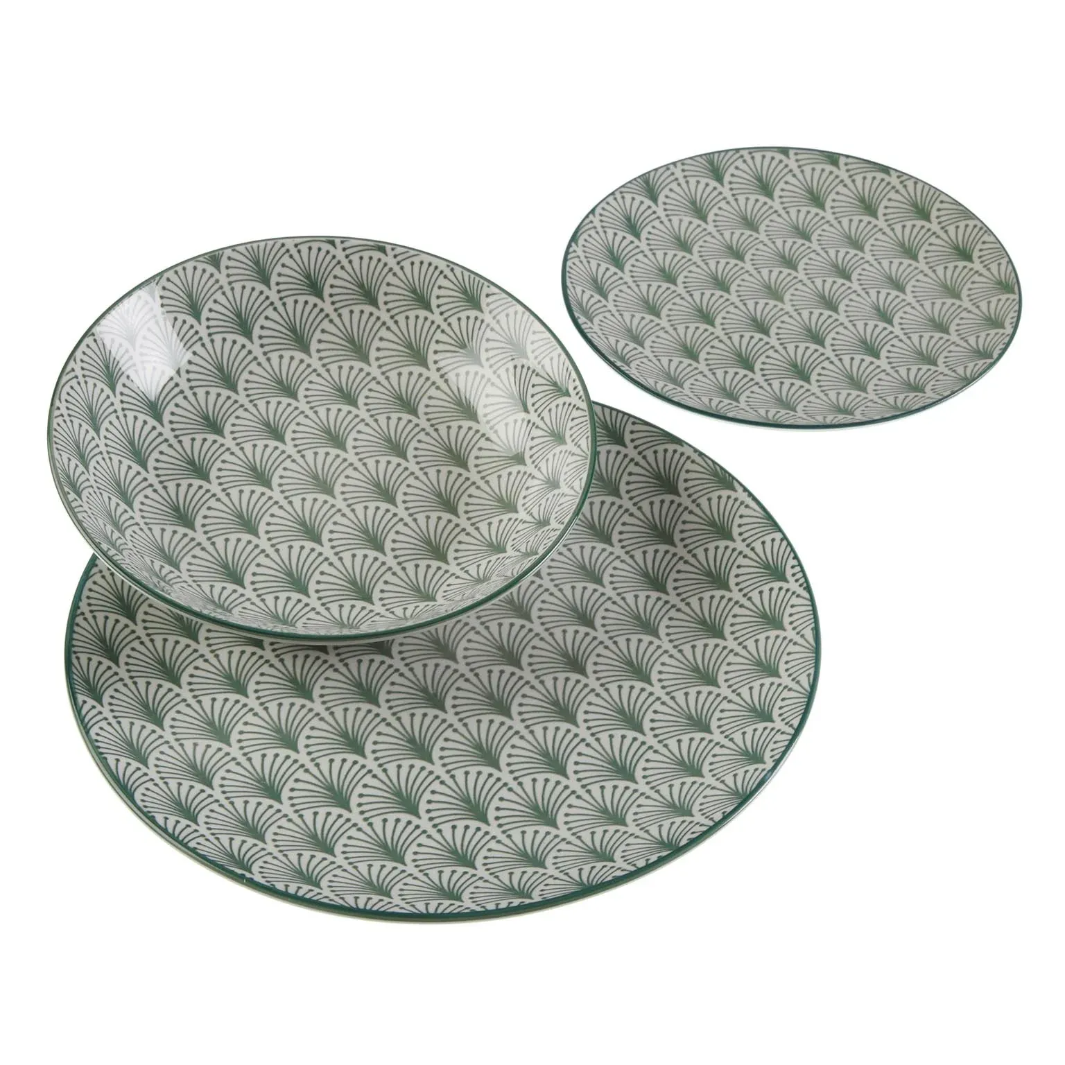 VAJILLA 18 PIEZAS PALM La altura del producto en cm es: El ancho del producto en cm es: La profundidad del producto en cm es: La alta calidad del producto es por que el material con el que esta fabricado el producto es: Porcelana Se usa para: Servicio de Mesa