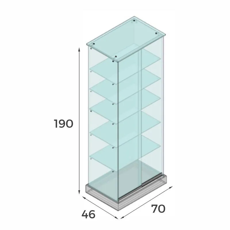 Vitrina cristal 8mm templado, 5 estantes 700x460x1900